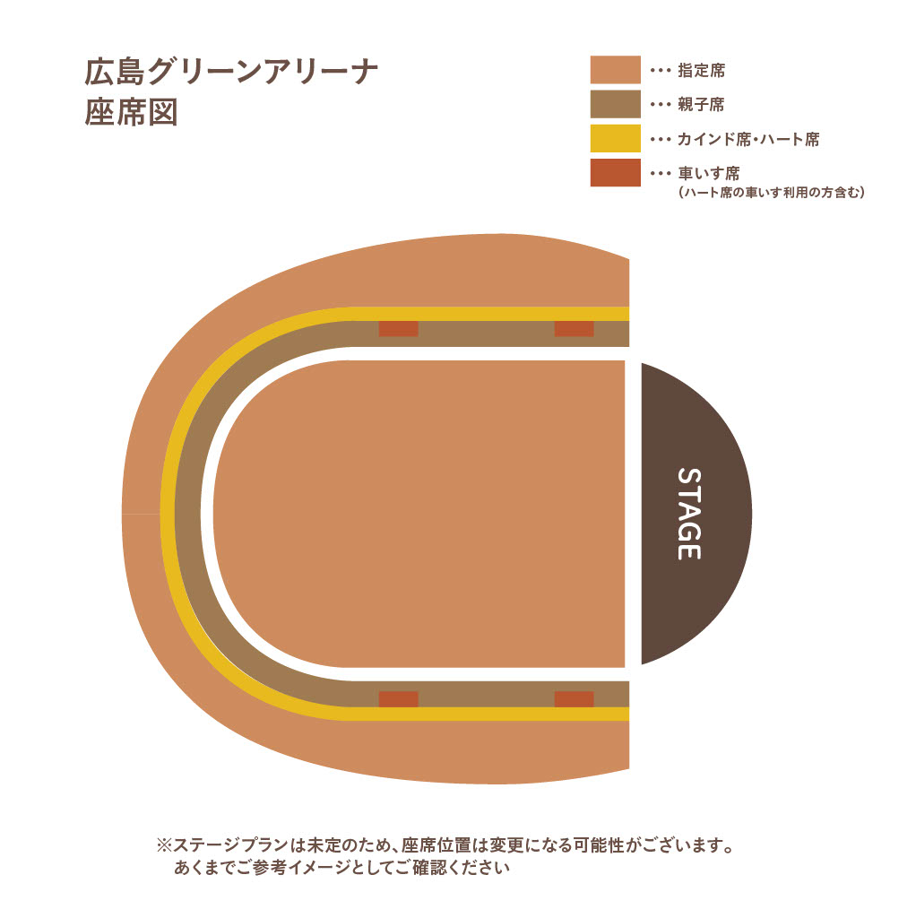 ・会場の構造上、座席によっては着席方向の位置がステージと対面にならない可能性もございます