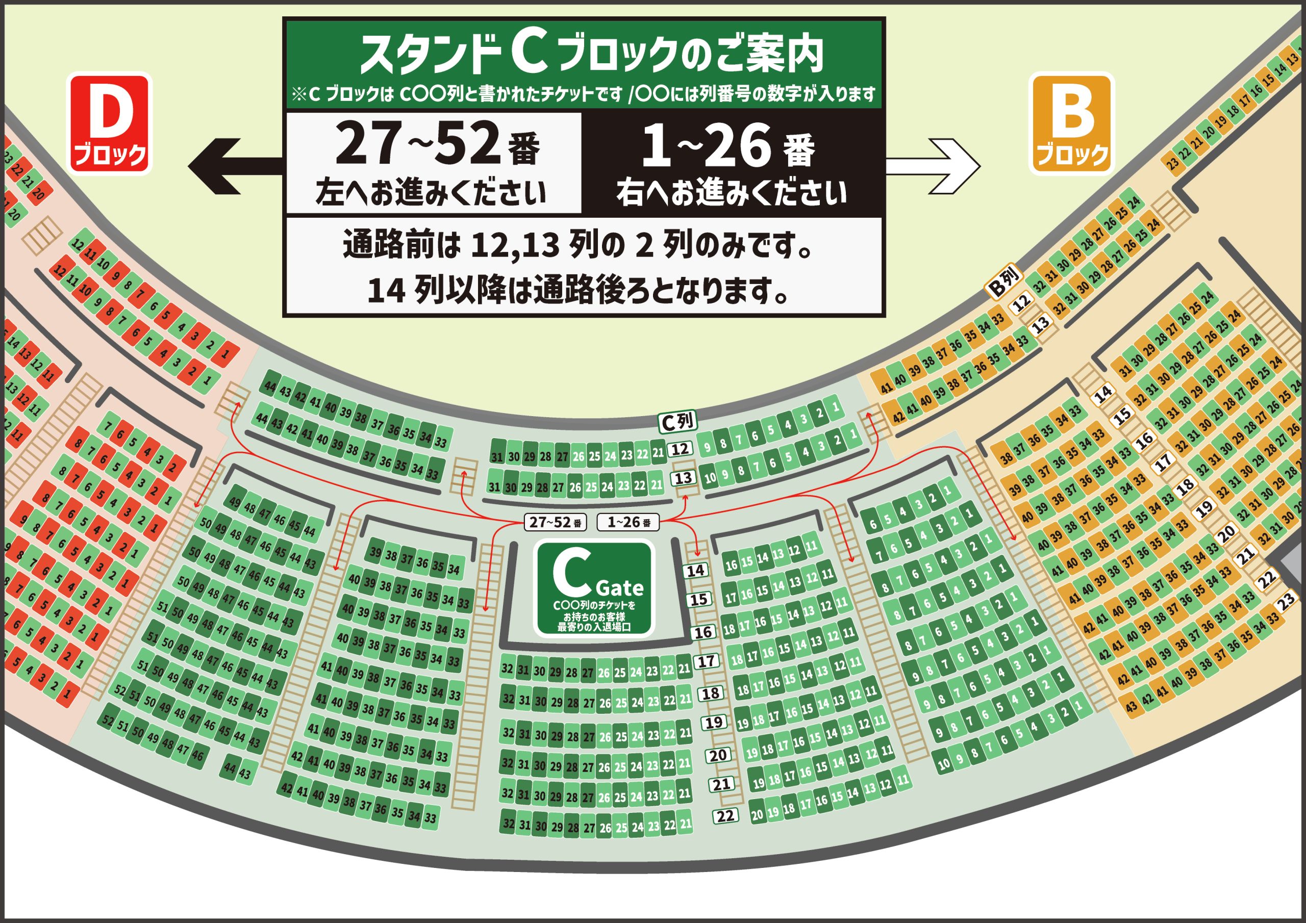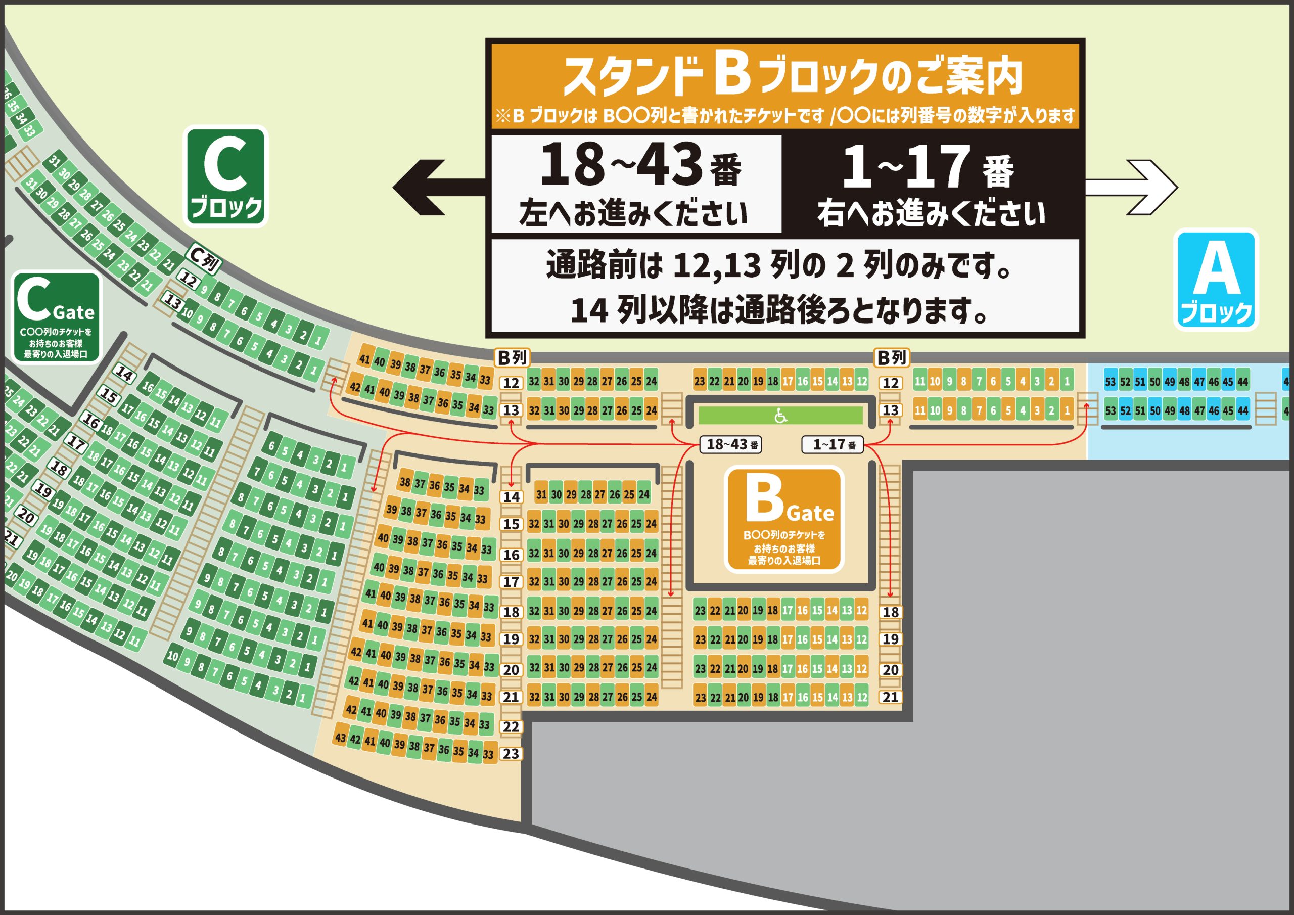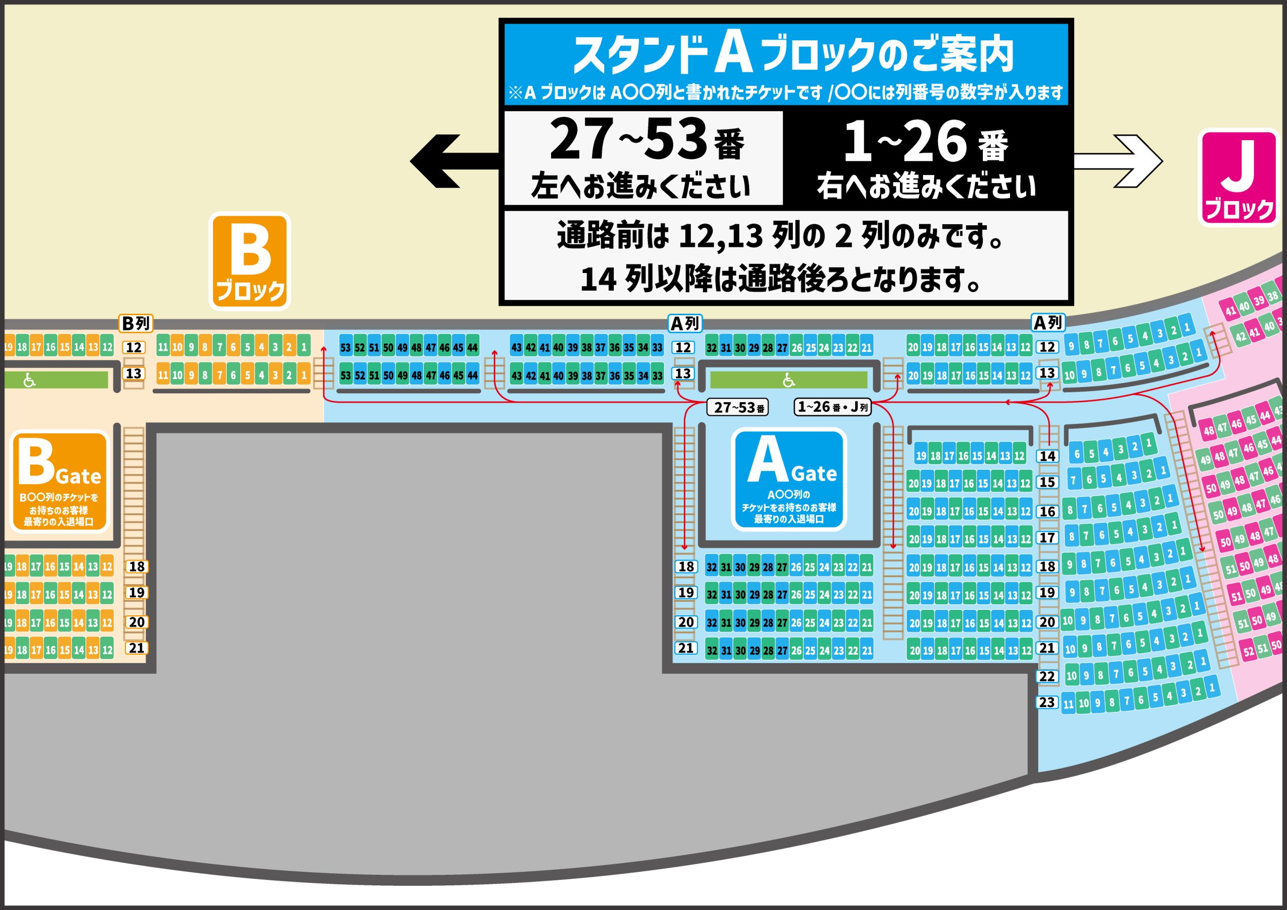 ▼ スタンド席 各ブロックのご案内