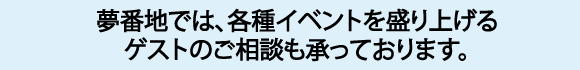 夢番地では、学園祭を盛り上げるゲストのご相談、ブッキングから、チケット販売のお手伝い、